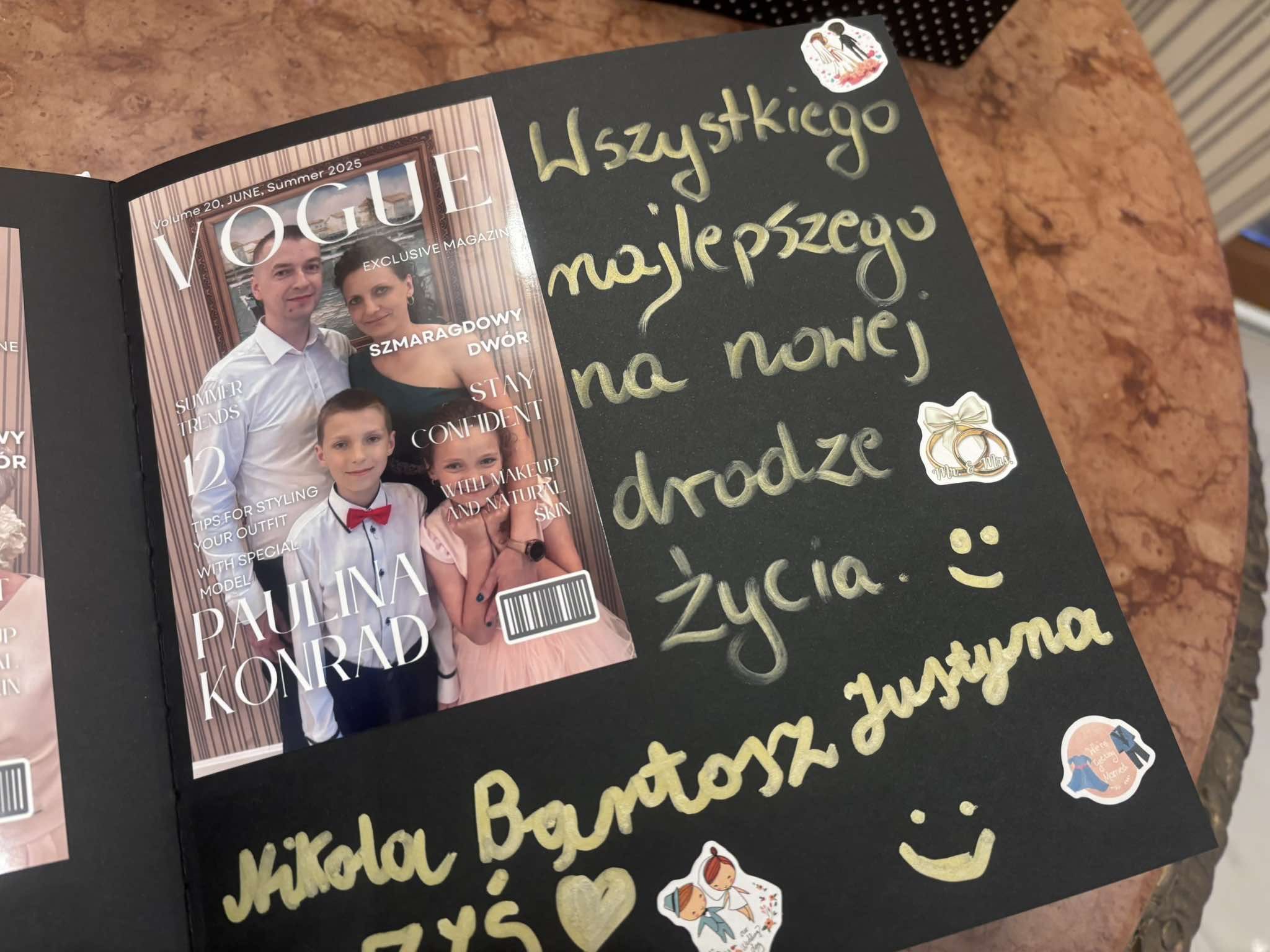 Jeżeli trzeba zadba o wklejenie do Księgi Gości